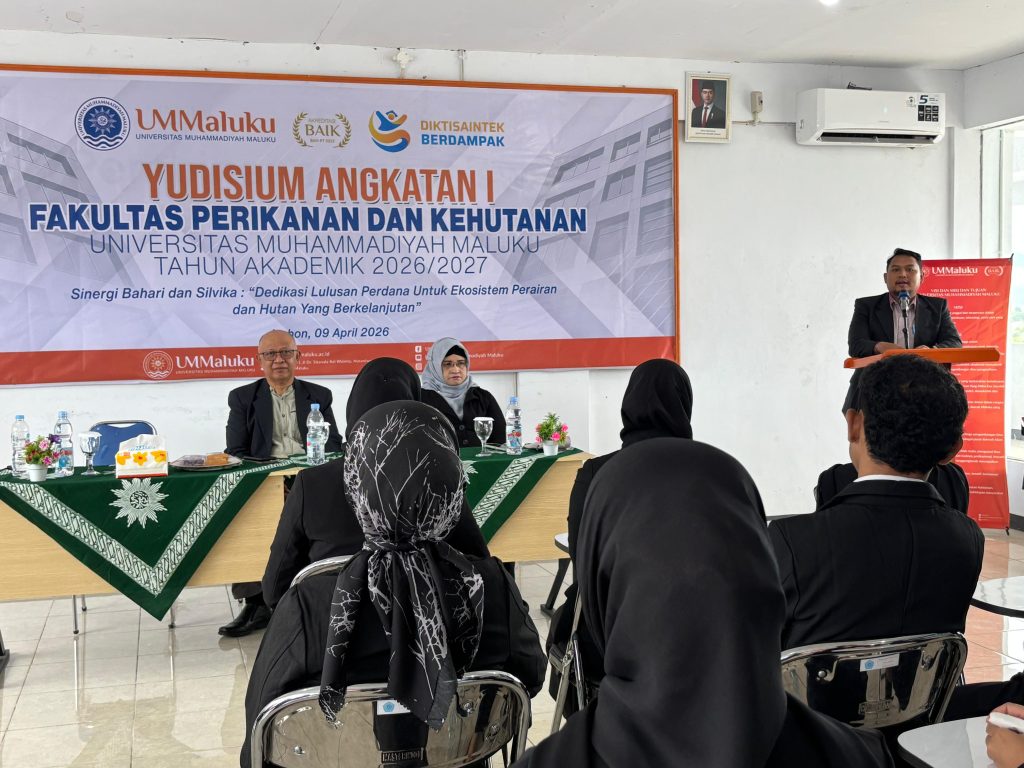 Fakultas Perikanan dan Kehutanan (FPK) Universitas Muhammadiyah Maluku (UM Maluku) gelar prosesi Yudisium Sarjana Angkatan ke-I Tahun Akademik 2025/2026 yang berlangsung khidmat pada Kamis (09/04/2026). Momentum bersejarah ini menandai keberhasilan fakultas dalam meluluskan 28 sarjana baru yang siap berkontribusi bagi pembangunan daerah.